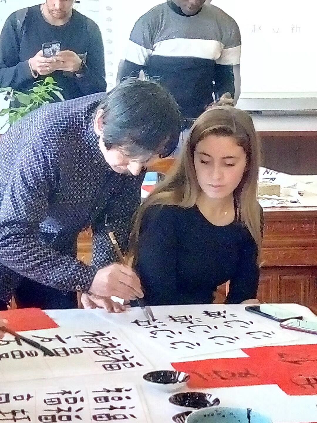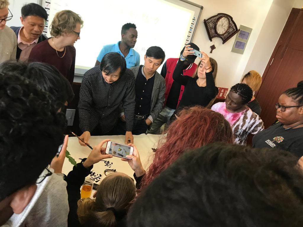 12月3日上午9点30分,以“汉字的魅力——以书法的角度”为主题的中国传统文化讲座在永利官网中华传统文化工作坊举行。来自美、德、荷兰、意大利等二十几个国家的留学生以及永利集团304am官方入口书法爱好者积极参与其中。同时,本次活动也吸引了温州市书法界的朋友前来旁听。