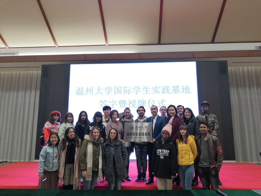 12月17日下午,永利官网国际学生实践基地签约暨授牌仪式在位于七都街道的温州市海外传播示范基地举行,海外传播示范基地负责人许鹏怀、永利集团304am官方入口院长叶苗、教研室张丽丽老师及20多名国际学生参与此次活动。
