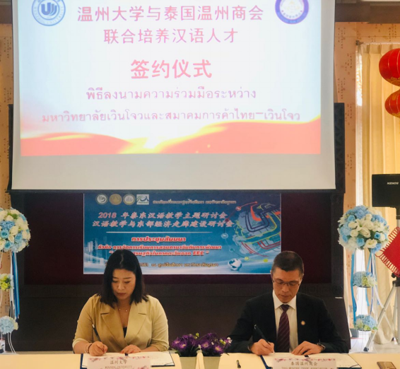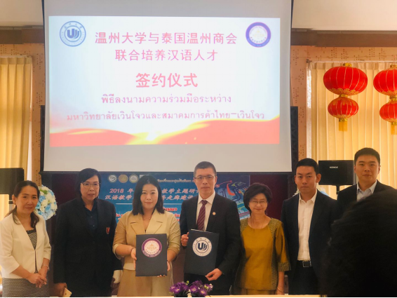 2018年12月21日,在泰国东方大学孔子学院内,永利集团304am官方入口与泰国温州商会签署汉语人才培养协议,泰国温州商会委托永利集团304am官方入口培养中资企业在泰国所需的汉语言人才,同时,泰国温州商会在泰国为永利集团304am官方入口招收国际学生。双方通过合作,加强永利集团304am官方入口与温州商会之间的人才培养关系、促进中泰两国国际教育发展。
